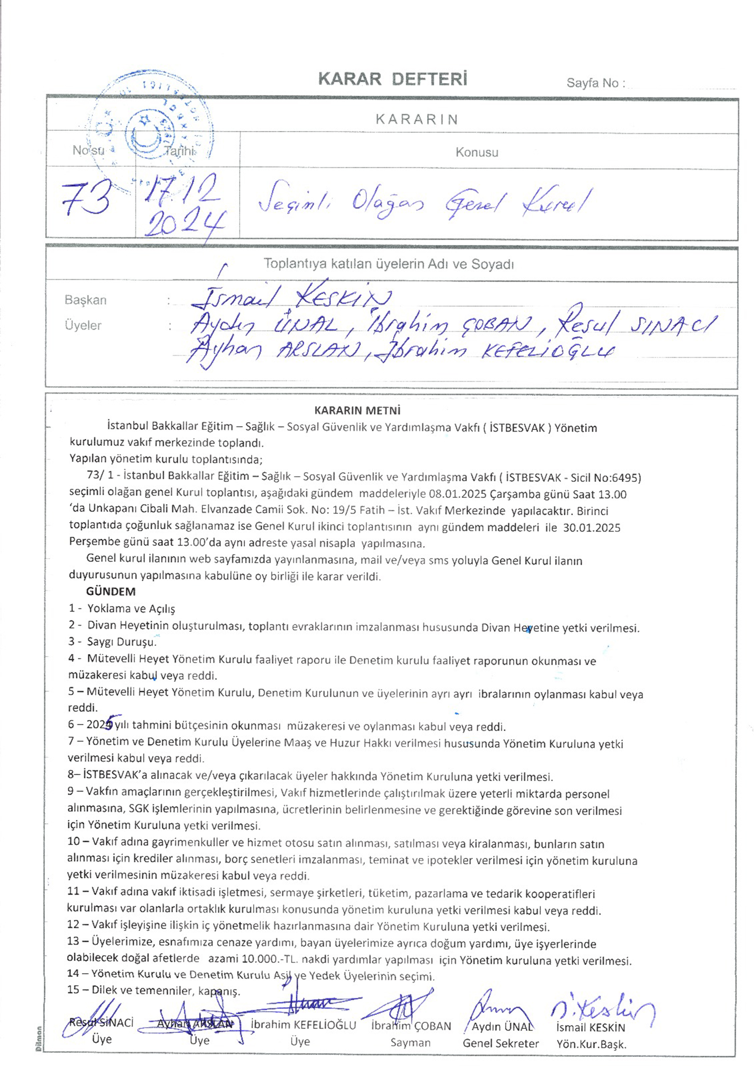 / İSTBESVAK 2024 YILI SEÇİMLİ OLAĞAN GENEL KURUL İLANI