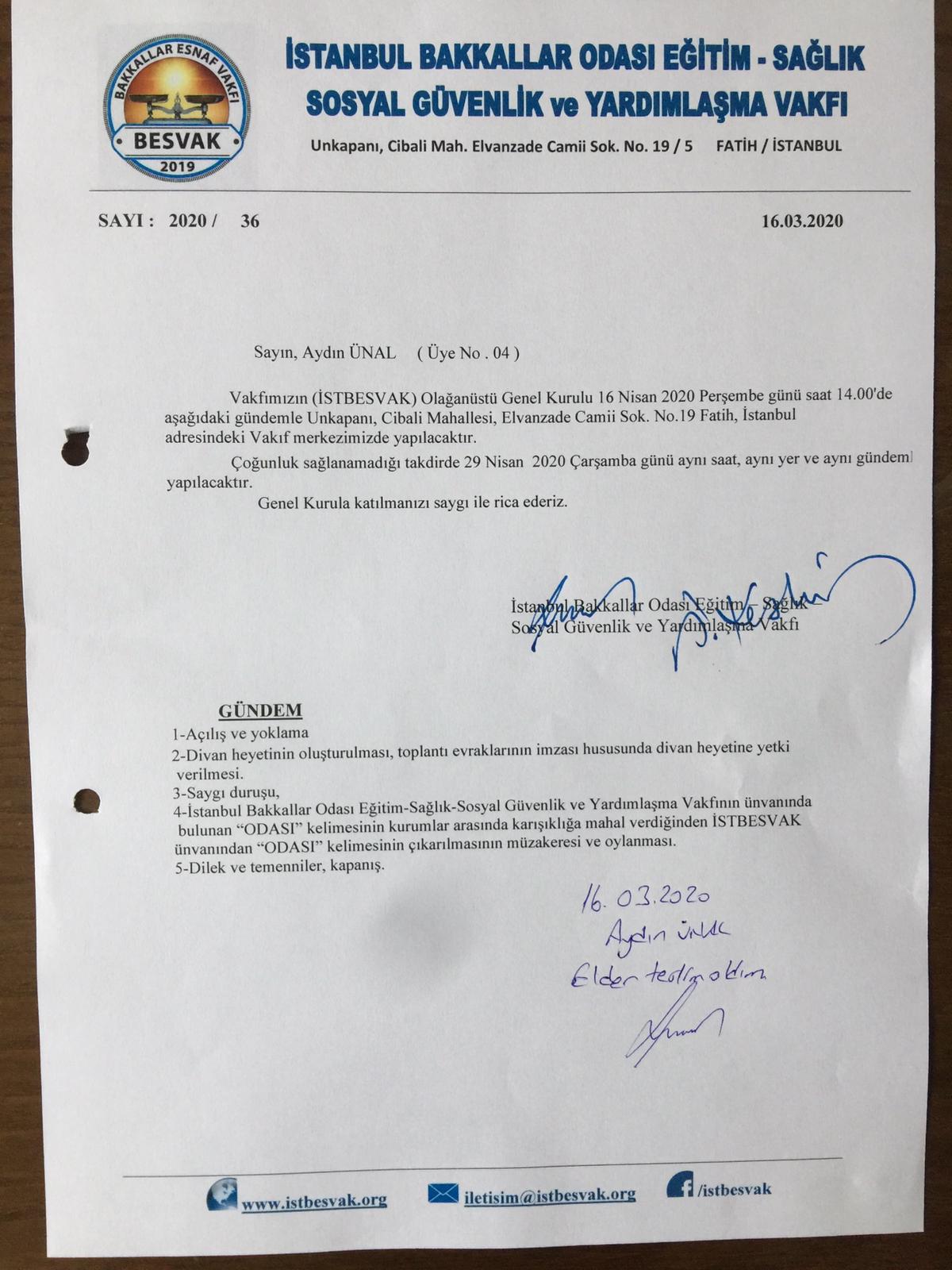 / İSTBESVAK OLAĞANÜSTÜ GENEL KURUL İLANI