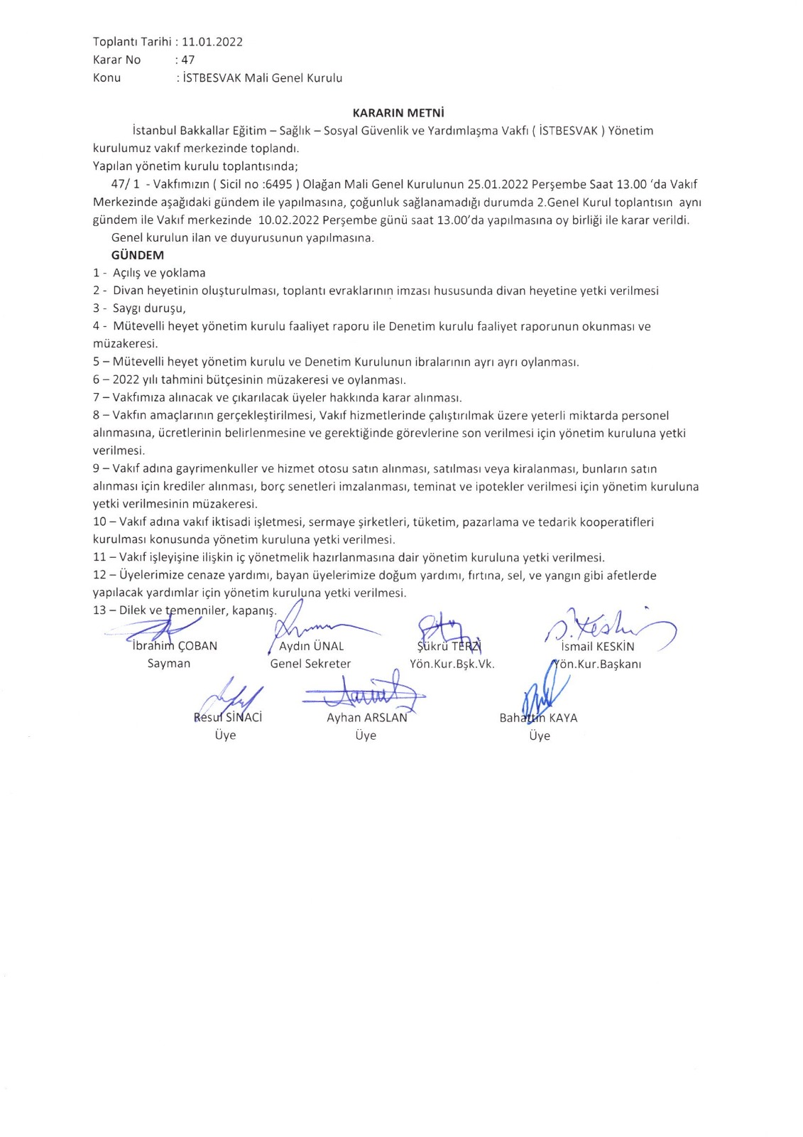 / İSTBESVAK 2020 YILI MALİ GENEL KURUL İLANI