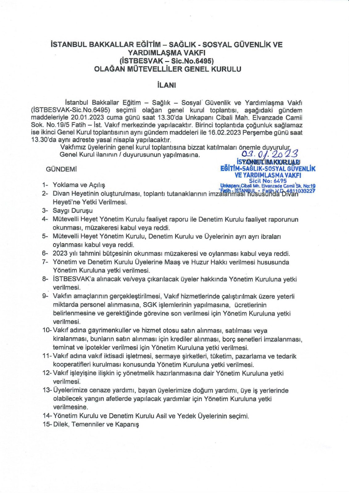 / İSTBESVAK 2022 YILI SEÇİMLİ OLAĞAN GENEL KURUL İLANI